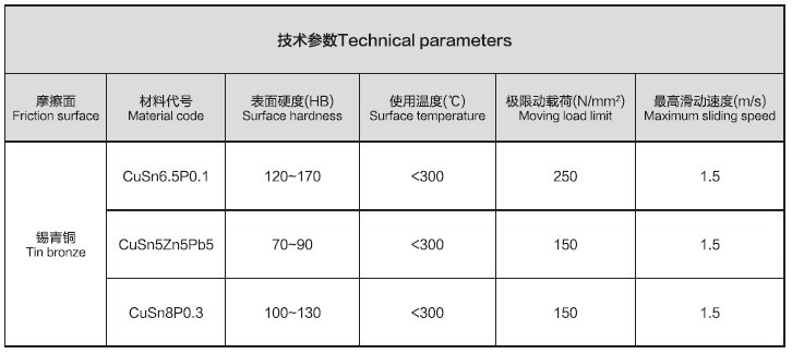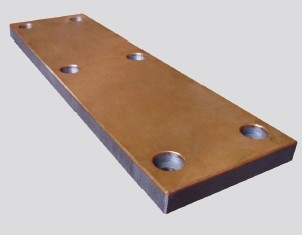 以低碳鋼為基體采用特殊工藝復(fù)合一層2mm 以上的軋制錫青銅板。由于軋制錫青銅板密度高、耐磨性好,極大的提高了產(chǎn)品使用壽命。此類產(chǎn)品按客戶來圖加工生產(chǎn),因采用鋼銅復(fù)合工藝, 降低成本25% 以上。廣泛用于各類機(jī)器、機(jī)械設(shè)備滑動(dòng)副。